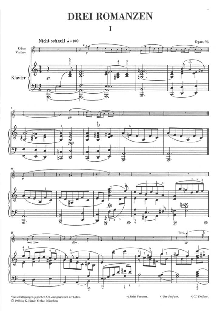 SCHUMANN:ROMANZEN OP.94 FOR OBOE VERSION FOR VIOLIN AND PIANO iz kategorije skladbe sodi med odlične violina.HN816 Leta 1849 je Schumann s komornimi glasbenimi deli obdaril tri pi ...