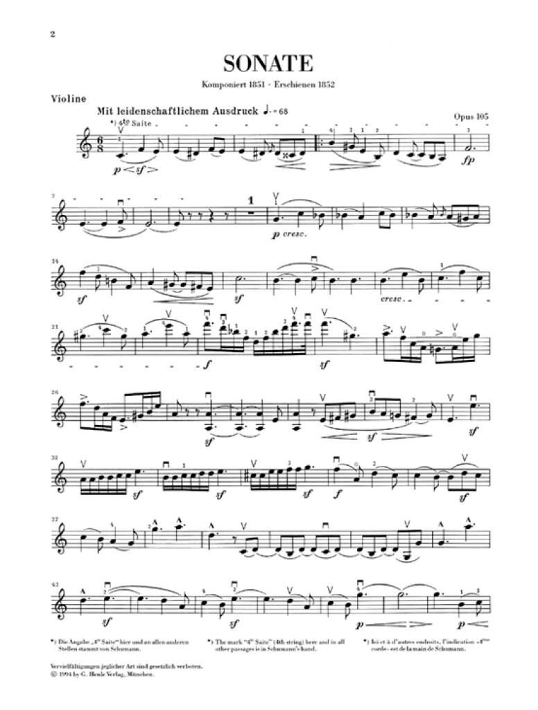 SCHUMANN:SONATA FOR VIOLIN AND PIANO A-MOLL OP.105 iz kategorije skladbe sodi med odlične violina.
