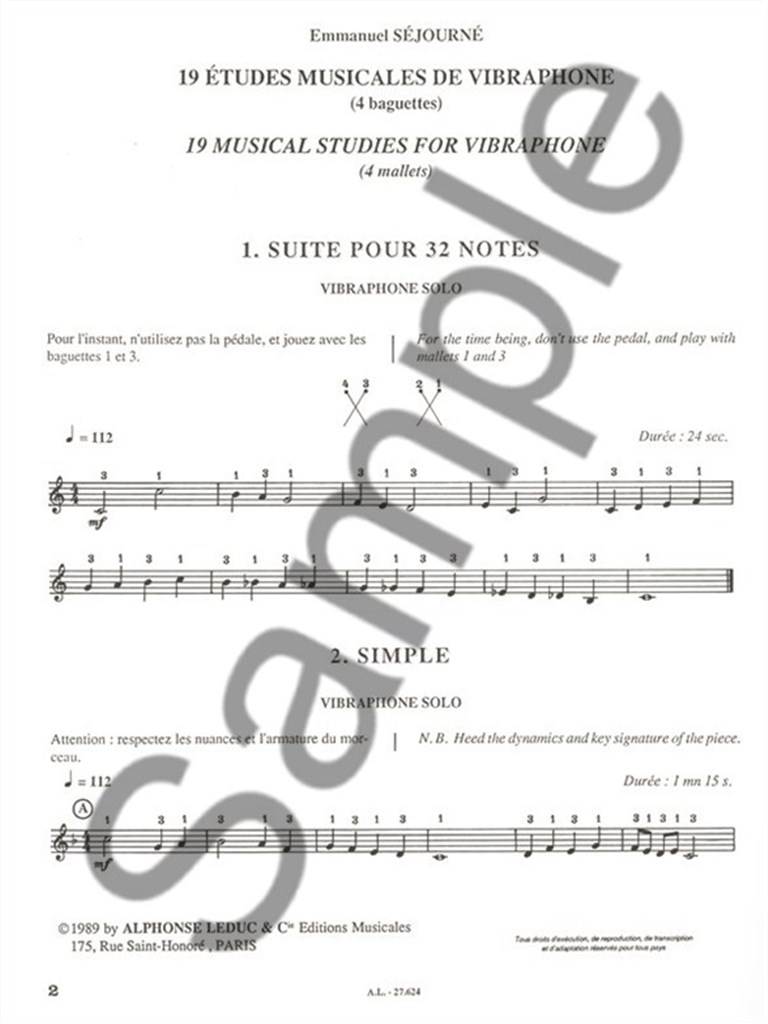 SEJOURNE:19 MUSICAL STUDIES FOR VIBRAPHONE VOL.5 iz kategorije etude sodi med odlične tolkala.