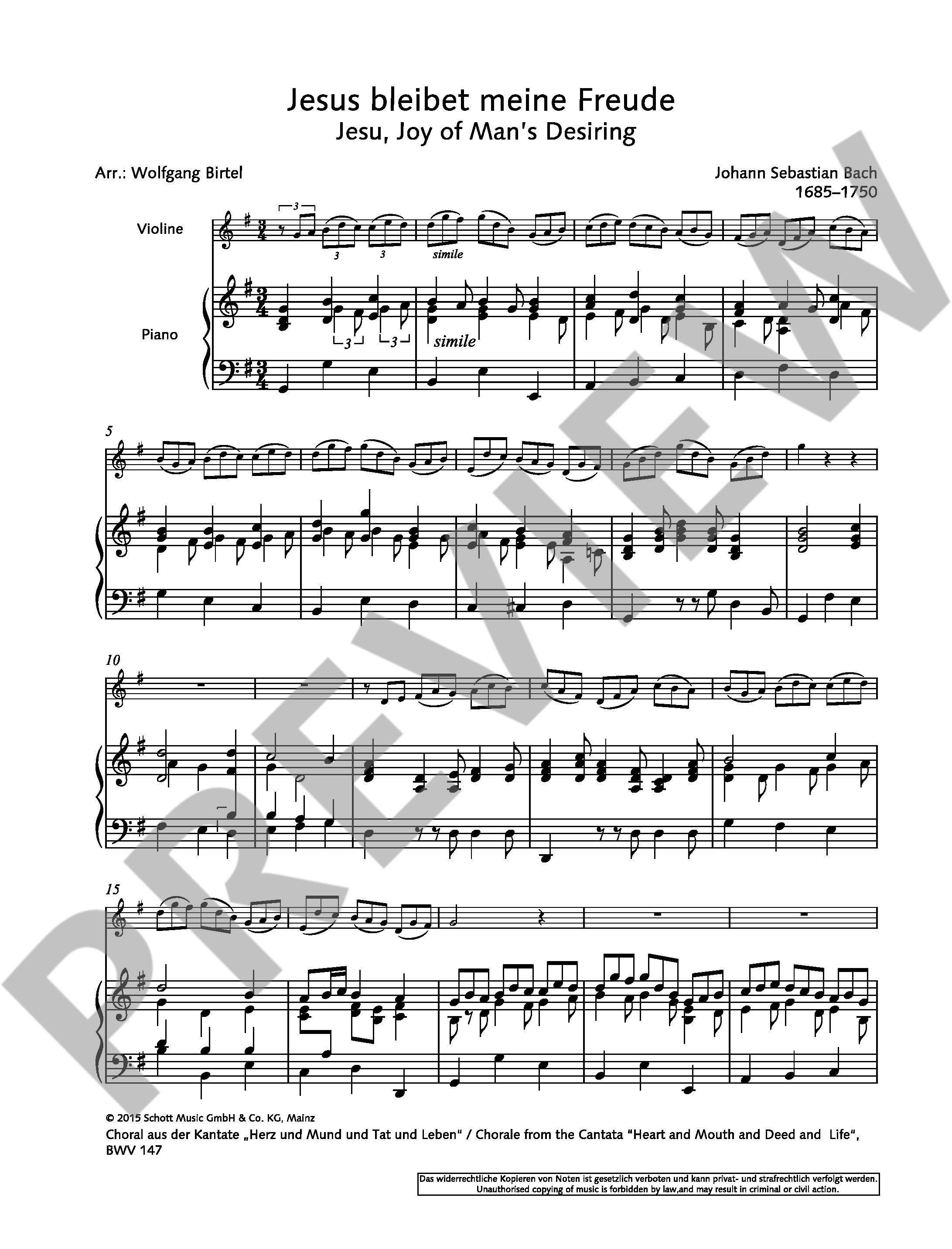 SERENADE FOR VIOLIN AND PIANO iz kategorije skladbe sodi med odlične violina.J.S. Bach: Jesu, Joy of Man's Desiring J.S. Bach: Air from the Orchestral Suite No. 3 D major G.F. Händ ...