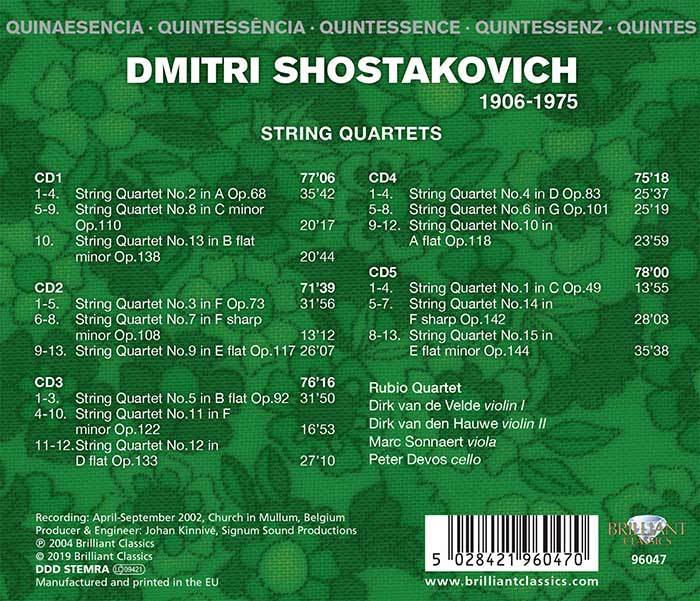 SHOSTAKOVICH:COMPLETE STRING QUARTETS 5CD iz kategorije klasika in slovenska narodna sodi med odlične cd.