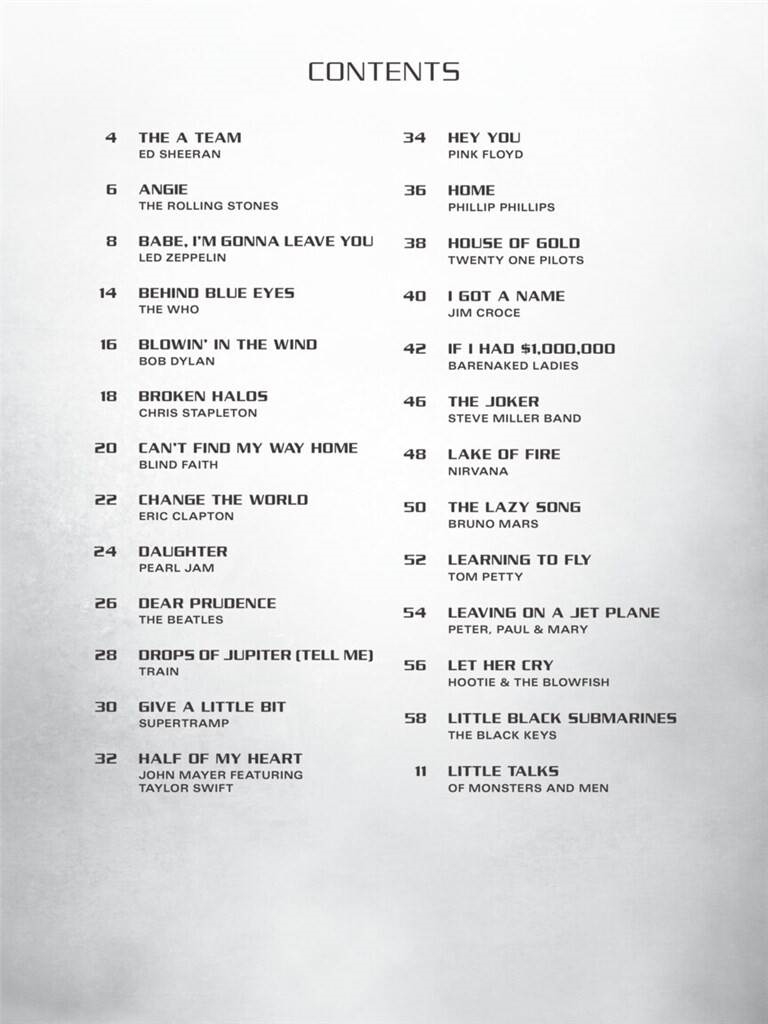 SIMPLE ACOUSTIC SONGS THE EASIEST GUITAR SONGBOOK EVER iz kategorije skladbe sodi med odlične akustična kitara.HL00287458 1. Home 2. Hey You 3. Mr. Jones 4. Learning to Fly 5. Lak ...