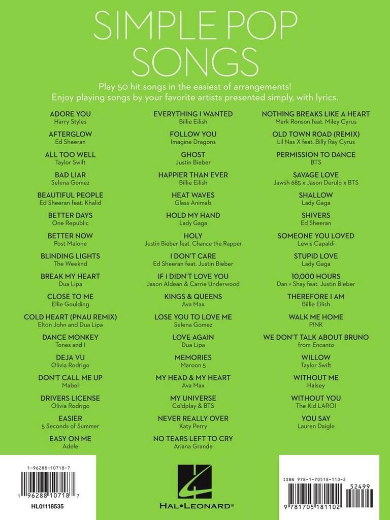 SIMPLE POP SONGS EASY PIANO 50 FAVORITES