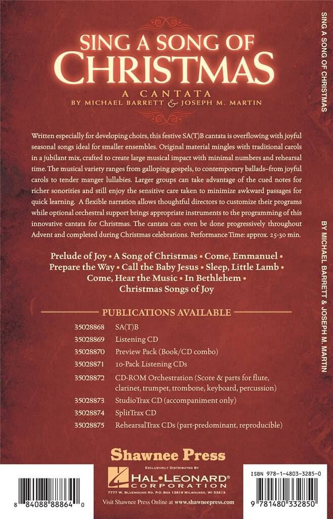 SING A SONG OF CHRISTMAS SA(T)B iz kategorije zbori sodi med odlične vokal.HL35028868 1. Joy to the world 2. Prepare The Way 3. Come, Emmanuel 4. A song of Christmas 5. Call The B ...