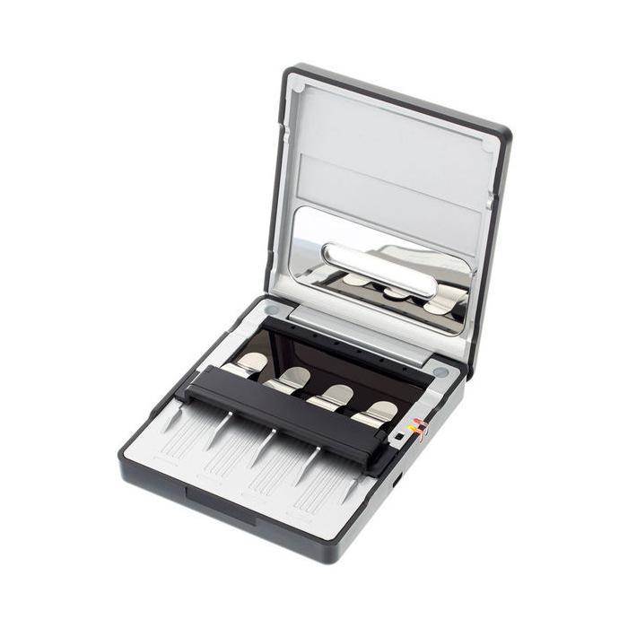 ŠKATLICA ZA JEZIČKE SILVERSTEIN / REED CURE iz kategorije pribor za jezičke sodi med odlične Pribor za pihala.• Revolucionarna škatlica s funkcijo strjevanja in sterilizacije • Za ...