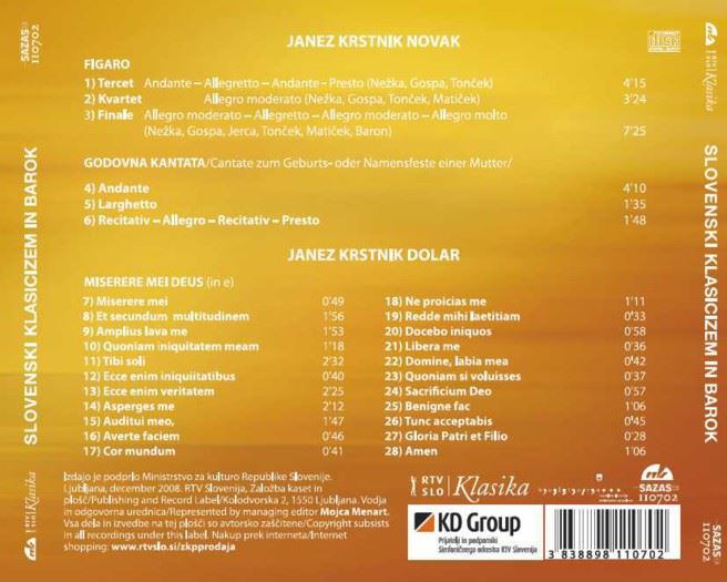SLOVENSKI KLASICIZEM IN BAROK/JANEZ KRSTNIK DOLAR,NOVAK iz kategorije klasika in slovenska narodna sodi med odlične cd.