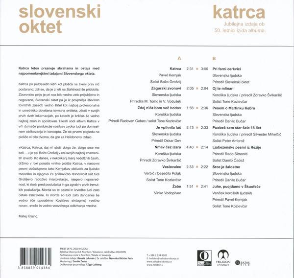 SLOVENSKI OKTET/KATRCA LP iz kategorije lp sodi med odlične Nosilci zvoka in slike.Vinilna plošča Slovenskega okteta je izšla kot ponatis ob petdeset-letnici izida. Na njej so nasl ...