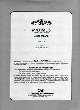 SPEARS:MAXIMUS SOLO FOR TWO TIMPANI iz kategorije skladbe sodi med odlične tolkala.