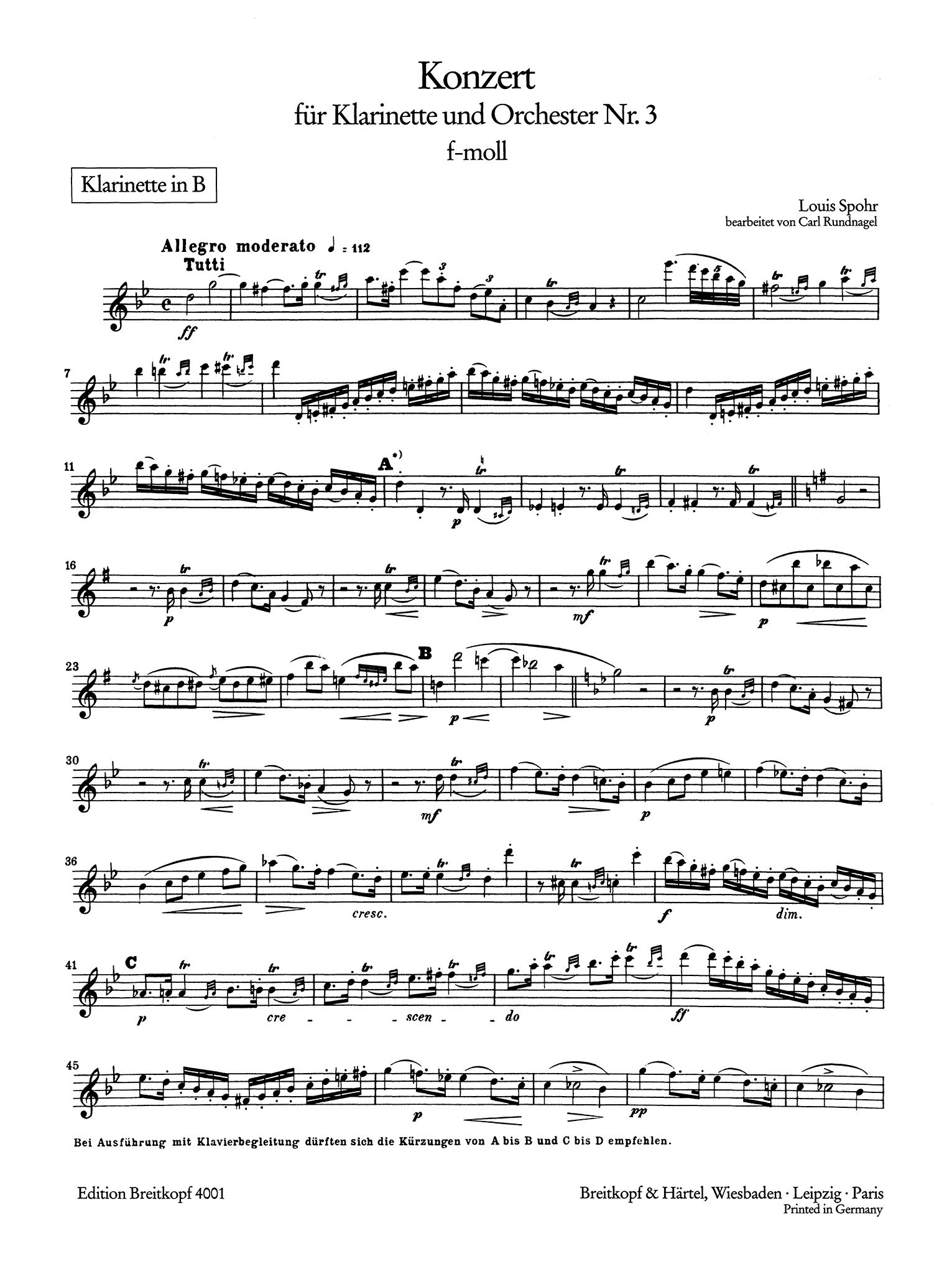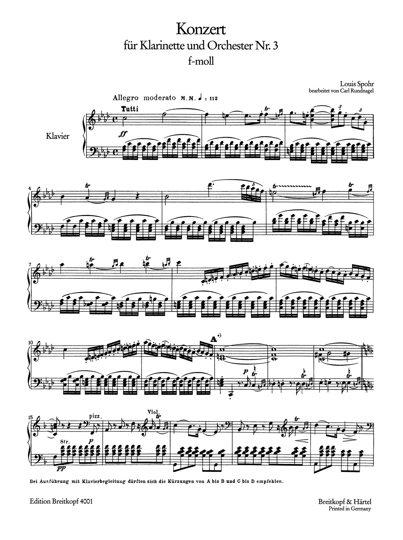 SPOHR L.:CONCERTO FOR CLARINET F-MOLL NO.3 CLARINET AND PIANO iz kategorije skladbe sodi med odlične klarinet.