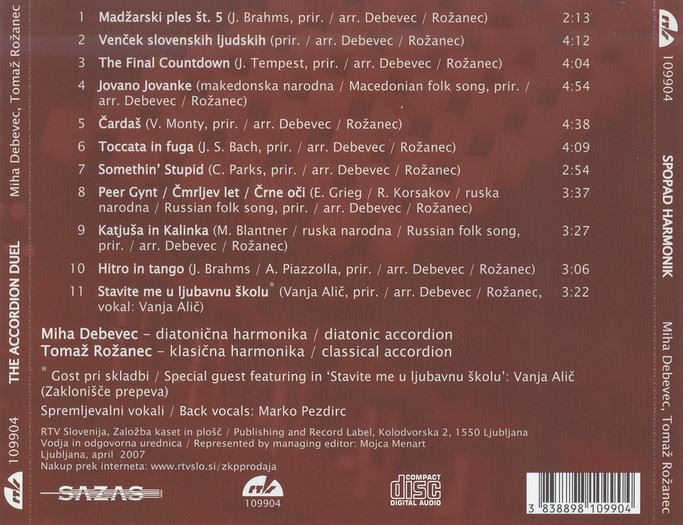 SPOPAD HARMONIK/ROŽANEC/DEBEVEC iz kategorije klasika in slovenska narodna sodi med odlične cd.