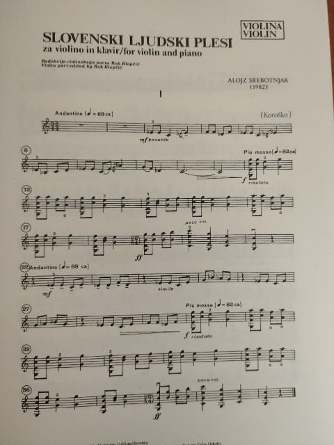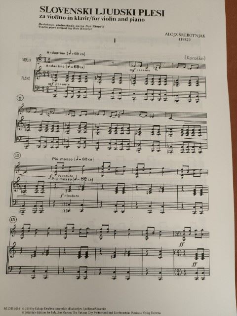 SREBOTNJAK:SLOVENSKI LJUDSKI PLESI VIOLINA IN KLAVIR iz kategorije skladbe sodi med odlične violina.