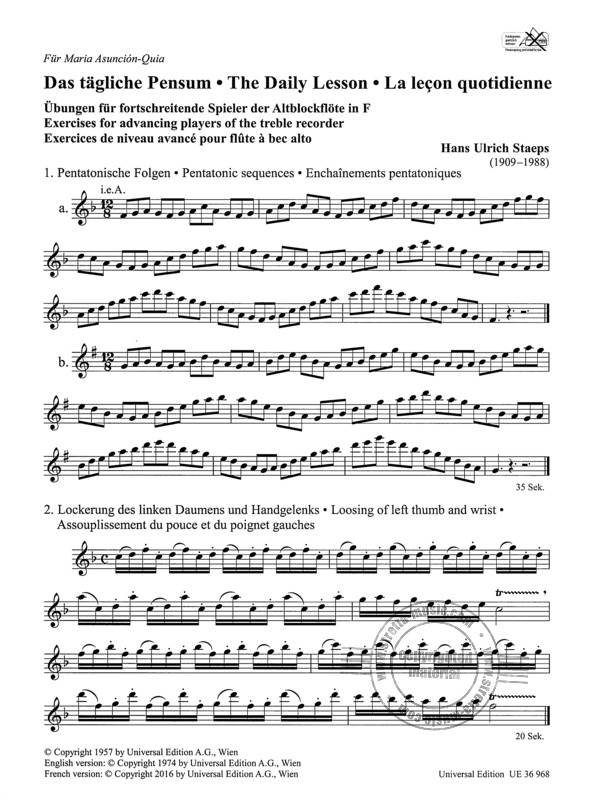 STAEPS: THE DAILY LESSON/DAS TAGLICHE PENSUM RECORDER