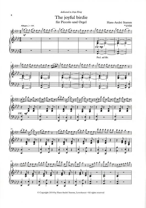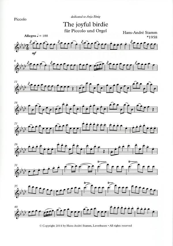 STAMM:ACHT /EIGHT PIECES FOR FLUTE AND ORGAN iz kategorije skladbe sodi med odlične flavta.The Joyful Birdie Fantasia cilena Rondo alla latina Fantasia alla latina Celtic Hymn Pava ...