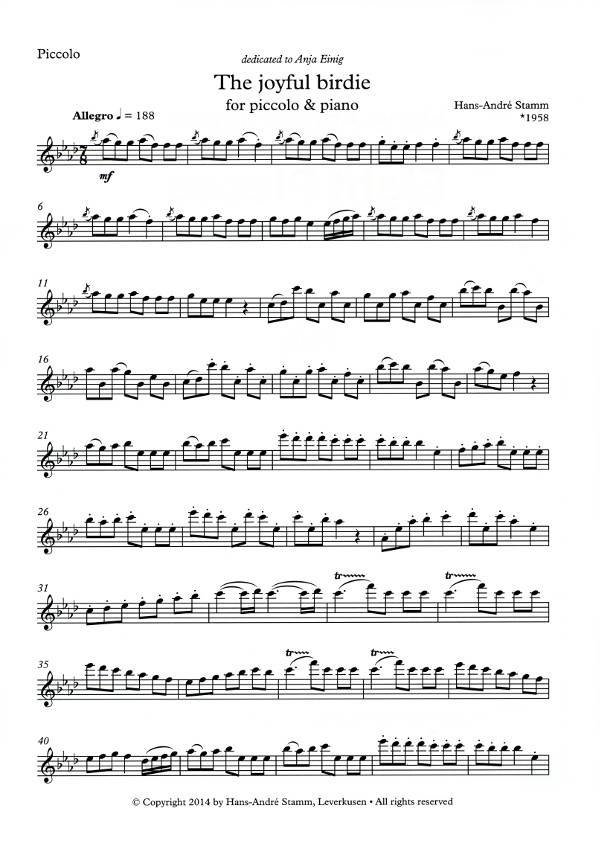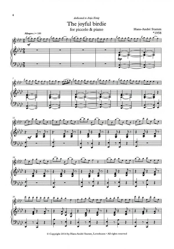 STAMM:ACHT STUCKE /EIGHT PIECES FOR FLUTE ( PICCOLO) & PIANO iz kategorije skladbe sodi med odlične flavta. Pick Five für Piccoloflöte und Klavier Take Seven für Flöte und Klavier ...