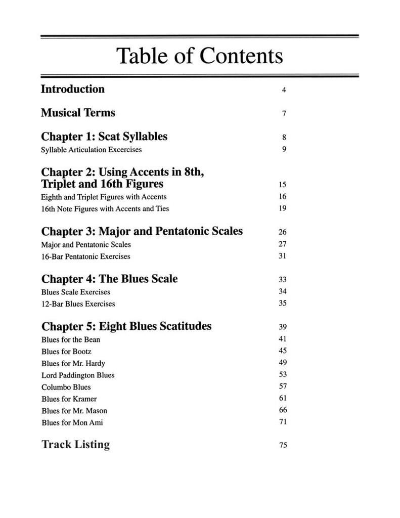 Vokalne improvizacije na bluesu Boba Stoloffa - avtorja Scat: Vocal Improvisation Techniques. Osredotoča se na bluesovske solaže v različnih sodobnih ritmih in zajema poudarke, vezi in artikulacijo zlogov. Vključuje zvok z 51 skladbami ritmov za vokalistov in instrumentalistov. Zvok je dostopen prek spleta z edinstveno kodo v knjigi in ga je mogoče pretakati ali prenesti. Zvočne datoteke vključujejo PLAYBACK+, večnamenski predvajalnik zvoka, ki vam omogoča upočasnitev zvoka brez spreminjanja višine, nastavitev točk zanke, spreminjanje tipk in premikanje levo ali desno.