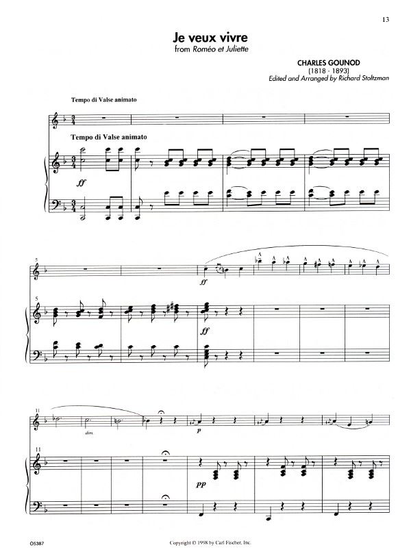 STOLTZMAN:ARIA FOR CLARINET AND PIANO iz kategorije skladbe sodi med odlične klarinet. Gounod, Charles: Je veux vivre from "Romeo and Juliette" Puccini, Giacomo: O mio babbino caro ...