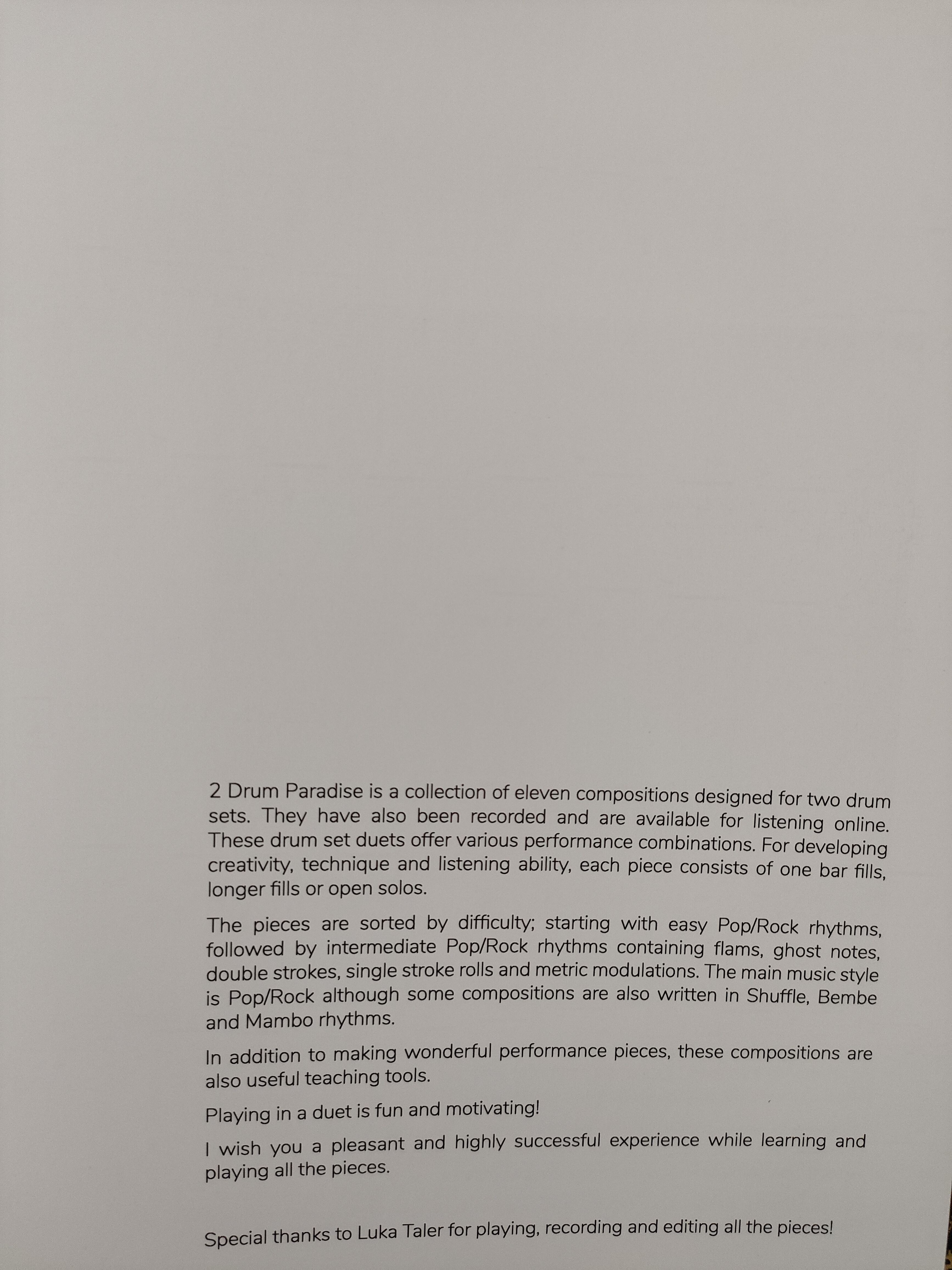 STRAJNAR:2 DRUM PARADISE 11 POP/ROCK PIECES DRUM SET DUETS iz kategorije zabavna glasba sodi med odlične tolkala.