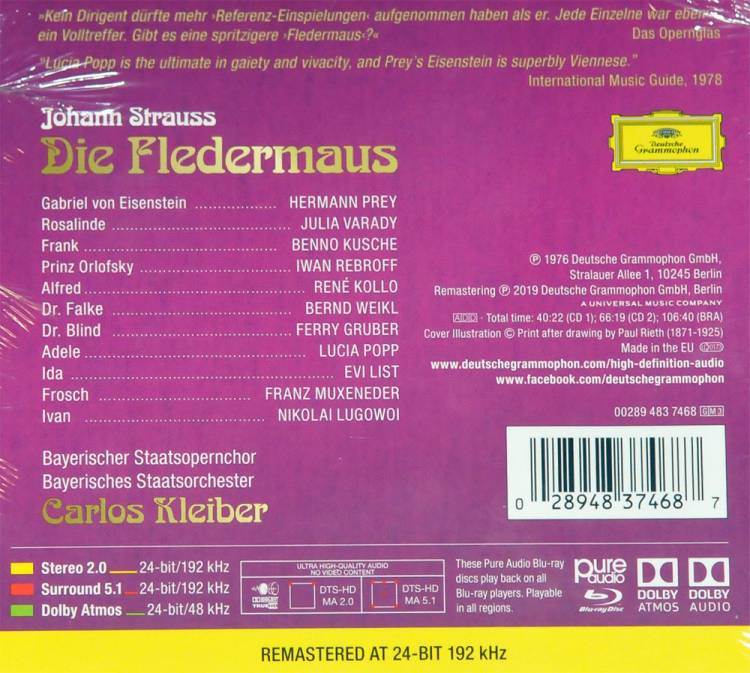 STRAUSS J.:DIE FLEDERMAUS/VARADY/POPP/PREY/WEIKL/CARLOS KLEIBER 2CD iz kategorije klasika in slovenska narodna sodi med odlične cd.
