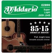 Strune D'Addario EZ Great American Bronze za akustično kitaro so izredno obstojne strune, nebrušene. Komplet. EZ890: bronze, super light, 009