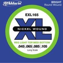 Strune D'Addario EXL 165 za električno bas kitaro, nebrušene. EXL 165: soft top, regular bottom, long scale, Nickelplated steel roun wound Debeline strun: 045, 065, 085, 105