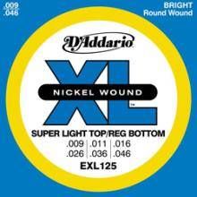 Strune D'Addario EXL 125 za električno kitaro. Komplet EXL 125: super light top, regular bottom Debeline strun; 009, 011, 016, 026, 036, 046