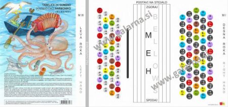 Vsak, ki bo prijel tabelico v roke, se bo spraševal, kako je doslej sploh lahko shajal brez tega tako enostavnega in obenem koristnega pripomočka. Če bodo otroci tabelico postavili na notno stojalo tako, da vidijo tudi hobotnico, ki igra na harmoniko, jim bo pri igranju hitro jasno, kateri gumbi in basi so drug ob drugem in kateri so višje ali nižje.