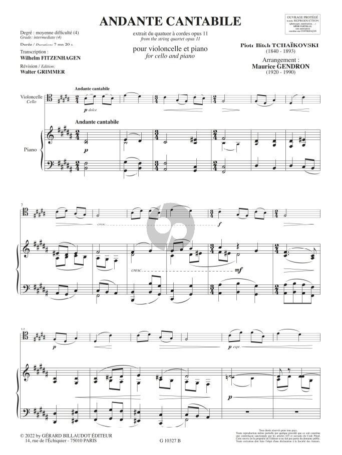 TCHAIKOVSKI:ANDANTE CANTABILE OP.11 CELLO AND PIANO iz kategorije skladbe sodi med odlične čelo.