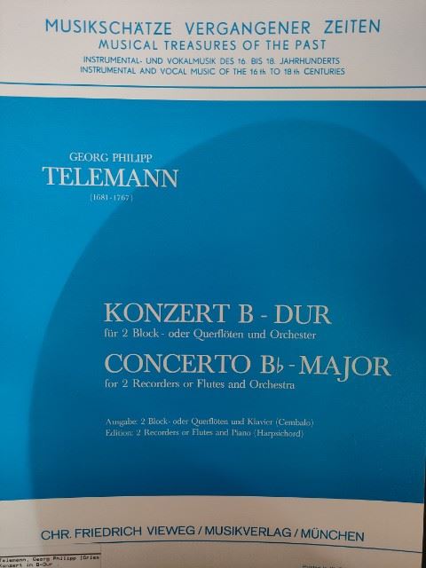 TELEMANN:Konzert B-Dur TWV 52:B1 2 ALTO RECORDER AND PIANO iz kategorije skladbe sodi med odlične kljunasta flavta.