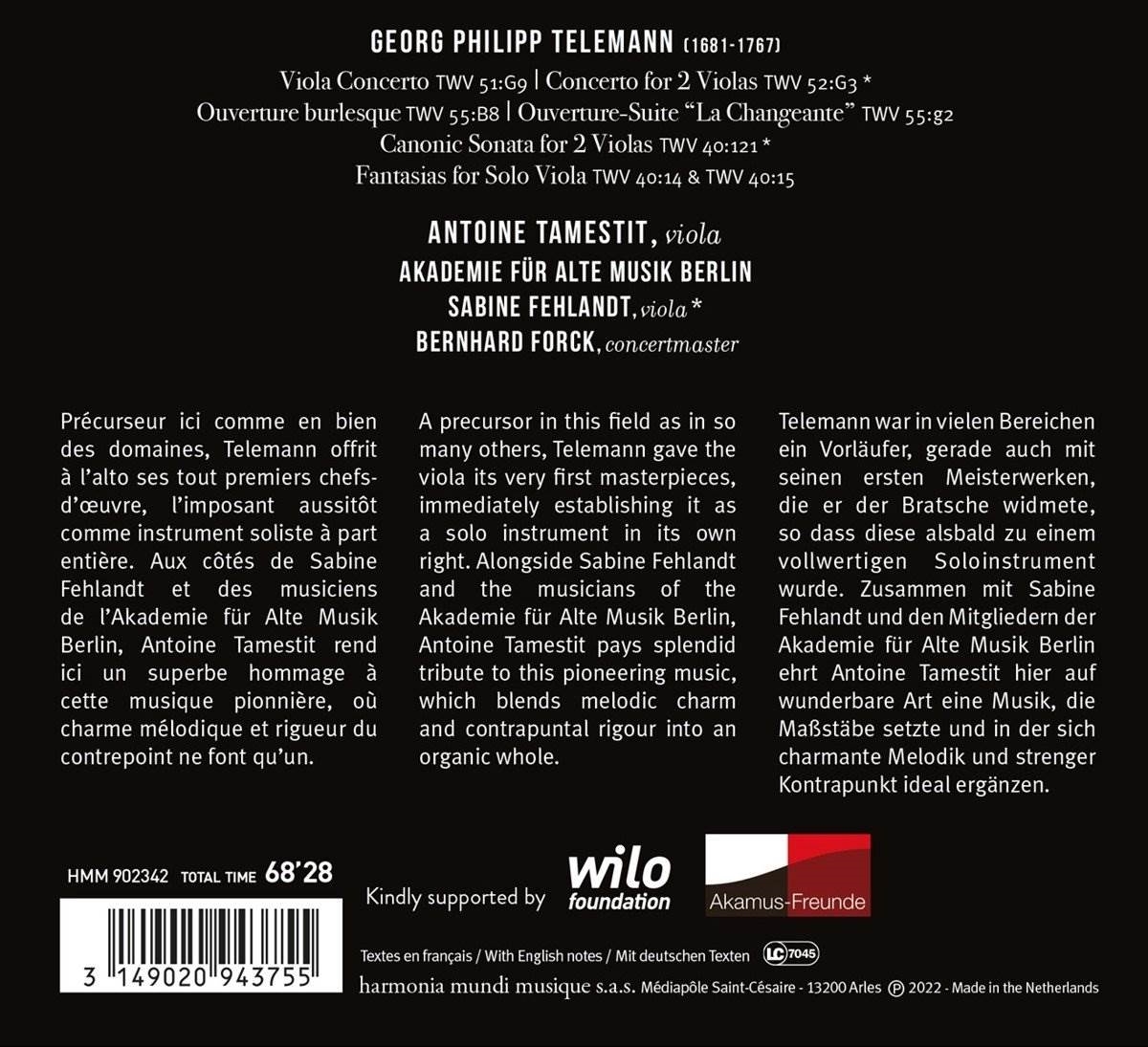 TELEMANN:VIOLA CONCERTOS/TAMESTIT iz kategorije klasika in slovenska narodna sodi med odlične cd.