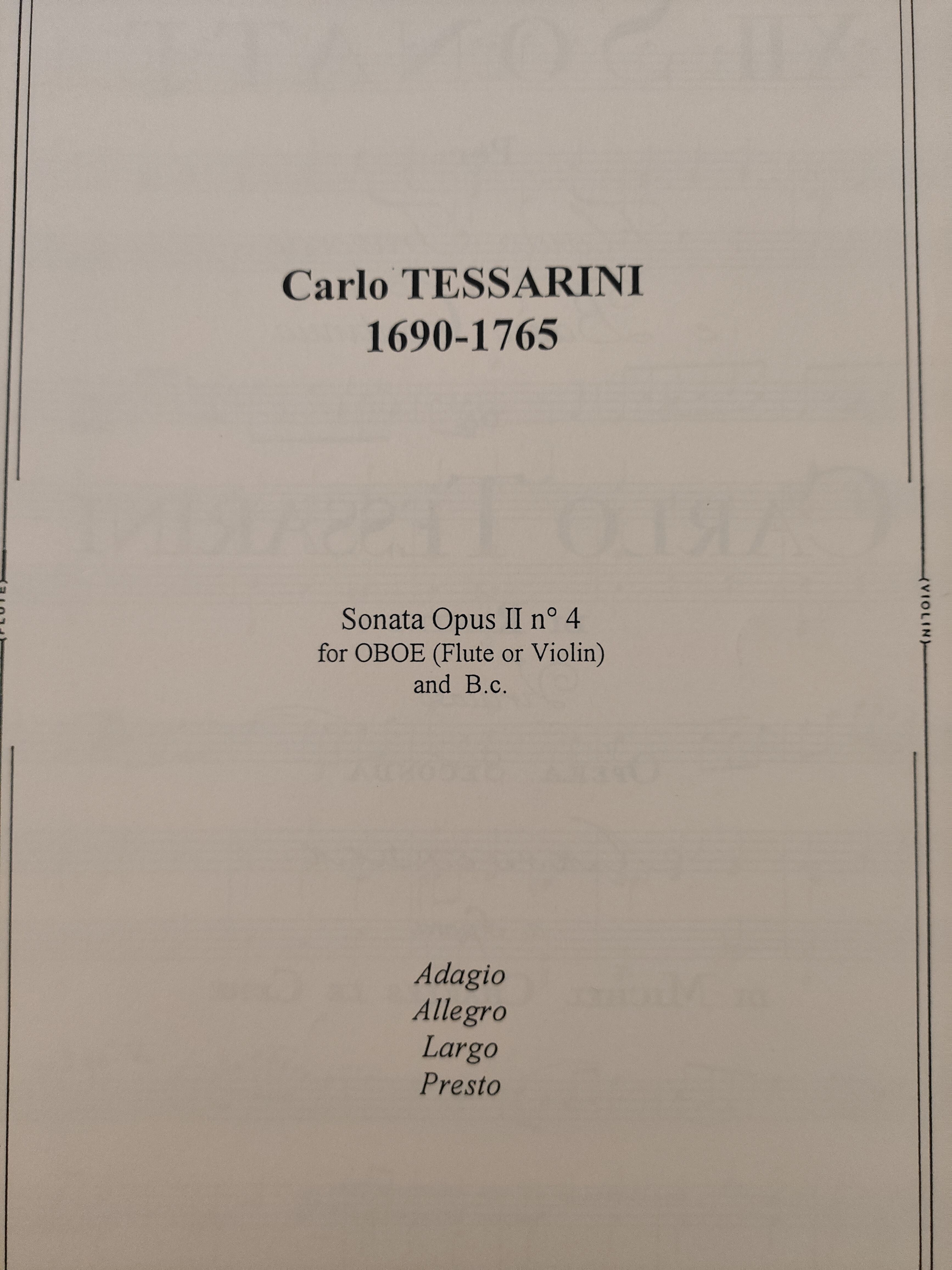 TESSARINI:SONATA OP.2 NO.4 FOR OBOE (FLUTE OR VIOLIN) AND B.C. iz kategorije skladbe sodi med odlične oboa.