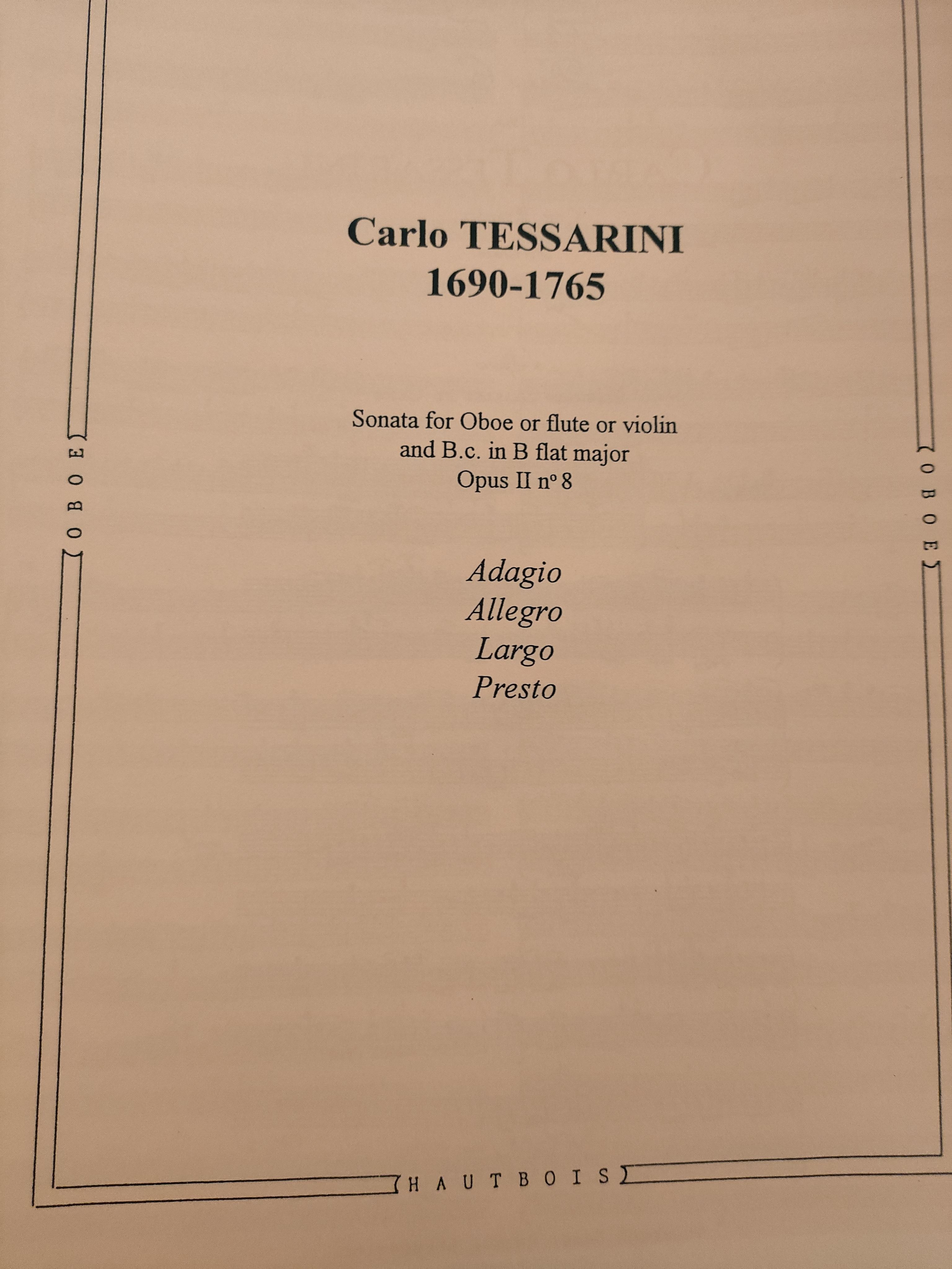 TESSARINI:SONATA OP.2 NO.8 FOR OBOE (FLUTE OR VIOLIN) AND B.C. iz kategorije skladbe sodi med odlične oboa.
