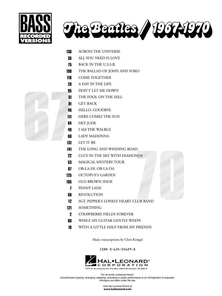 THE BEATLES 1967-1970 BASS RECORDED VERSIONS iz kategorije bas kitara sodi med odlične brenkala.HL00690557 1. Across the Universe 2. All You Need is Love 3. Revolution 4. Back In ...