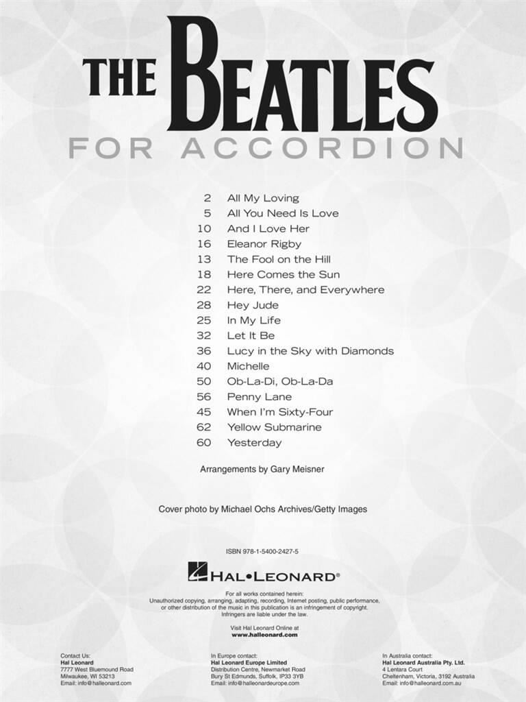 THE BEATLES FOR ACCORDION iz kategorije zabavna glasba sodi med odlične Klavirska.All My Loving All You Need Is Love And I Love Her Eleanor Rigby Here Comes The Sun Here, There And ...