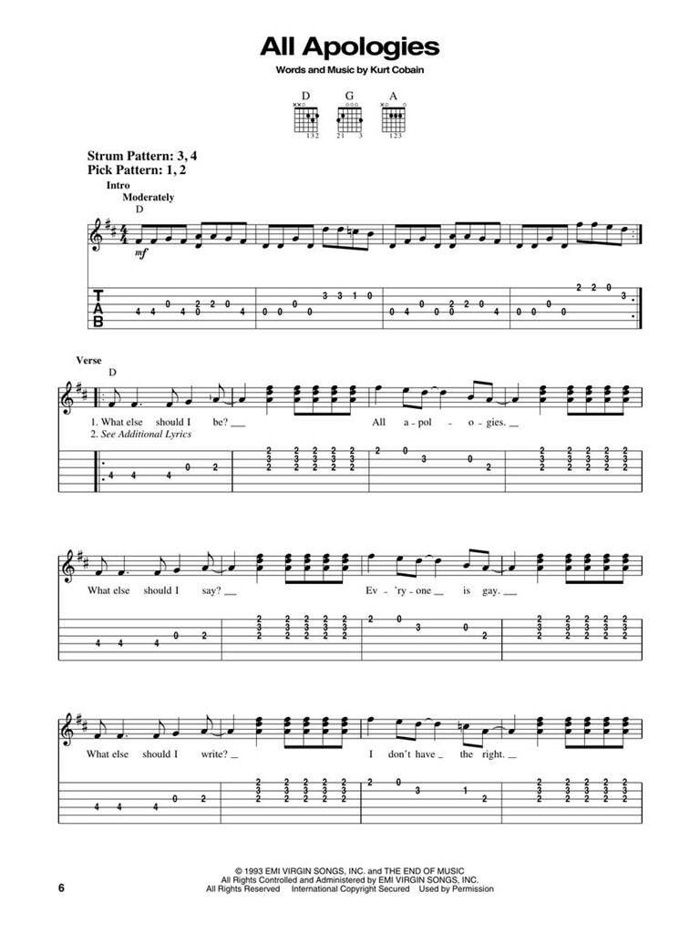 THE BEST OF NIRVANA EASY GUITAR WITH NOTES & TAB iz kategorije skladbe sodi med odlične akustična kitara.HL00702096 1. Rape Me 2. Pennyroyal Tea 3. All Apologies 4. About a Girl 5 ...