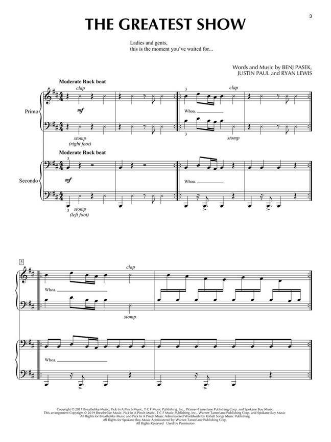 THE GREATEST SHOWMAN PIANO DUET 4 HANDS iz kategorije klavir 4 ročno sodi med odlične klavir.Come Alive (from THE GREATEST SHOWMAN) (Arranger: David Pearl) From Now On (from THE GR ...