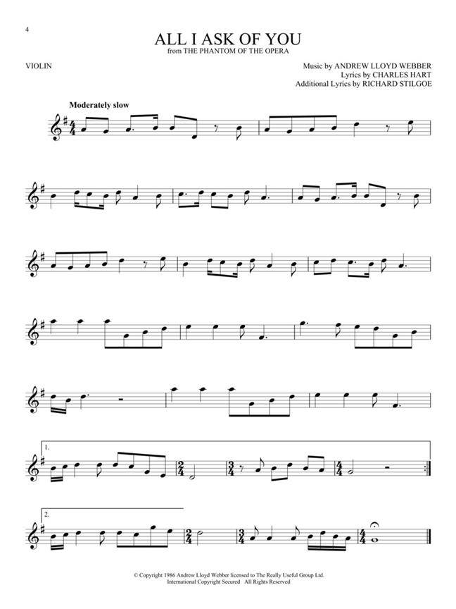 THE SONGS OF ANDREW LLOYD WEBBER VIOLIN iz kategorije zabavna glasba sodi med odlične violina.All I Ask Of You (from THE PHANTOM OF THE OPERA) (Composer: Andrew Lloyd Webber) Amigo ...