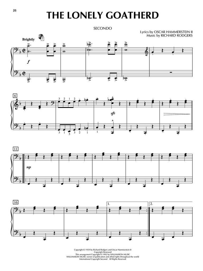 THE SOUND OF MUSIC PLAY ALONG +AUDIO ACCESS 4 HANDS iz kategorije klavir 4 ročno sodi med odlične klavir.HL00290557 1. Maria 2. Climb Ev'Ry Mountain 3. Do-re-mi 4. Edelweiss 5. T ...