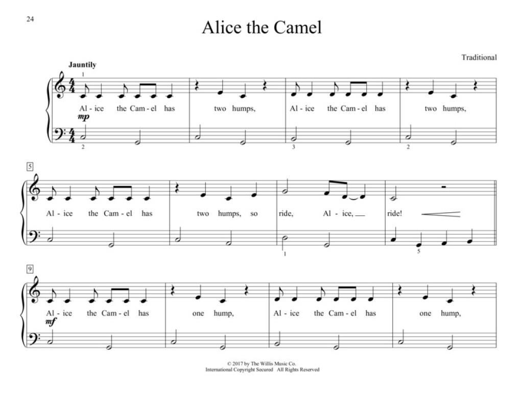 THOMPSON EASIEST PIANO FIRST CHILDREN'S SONGS iz kategorije zabavna glasba sodi med odlične klavir.HL00282895 1. A-tisket, A-tasket [Christopher Hussey] 2. Alice The Camel [Christ ...