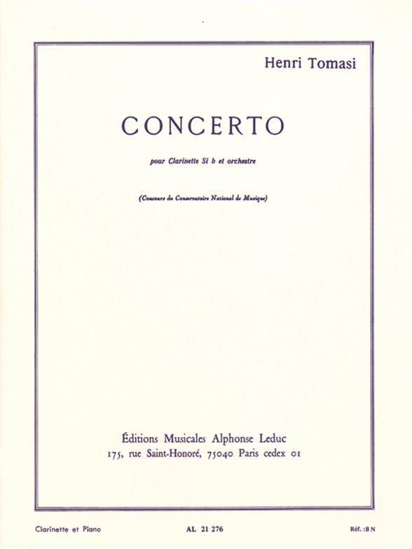 Koncert za klarinet in orkester, objavljen leta 1953, je sestavil francoski skladatelj, dirigent v dobitniku Grand Prix de Rome leta 1927, Henri Tomasi (1901-1971). Ta koncert je bil posvečen Ulysse Delécluse (1907-1995), francoskemu klarinetistu, znanemu po prepisu "Quinze études" J. S. Bacha za klarinet. Vsak od treh stavkov je bil izbran za izpit na Pariškem konservatoriju, prvi stavek za Izpit samostojno leta 1953 in drugi in tretji za Tekmovanje Solo leta 1966. Ta koncert se začne z nekonvencionalnimi začetniki, klarinet igra na svoj in se mu kasneje pridruži še orkester. Vsebuje tudi nekaj nenavadnega materiala, kot so polikordi in disonanca skozi kos. Opombe k temu koncertu samega Henrija Tomasija so bile napisane leta 1957, ki opisujejo pomen improvizacije za glavno temo.