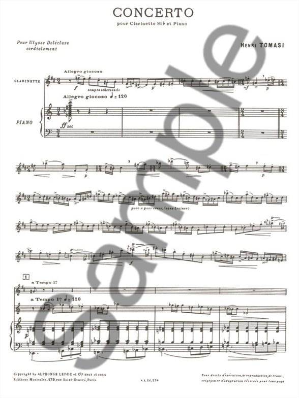 TOMASI:CONCERTO POUR CLARINETTE ET PIANO iz kategorije skladbe sodi med odlične klarinet.AL21276 Koncert za klarinet in orkester, objavljen leta 1953, je sestavil francoski sklada ...