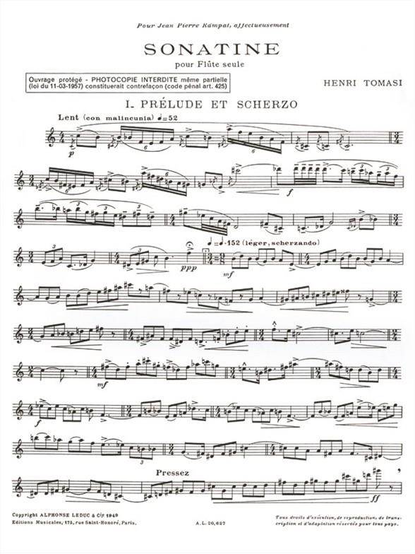 TOMASI:SONATINE POUR FLUTE SEUL iz kategorije skladbe sodi med odlične flavta.