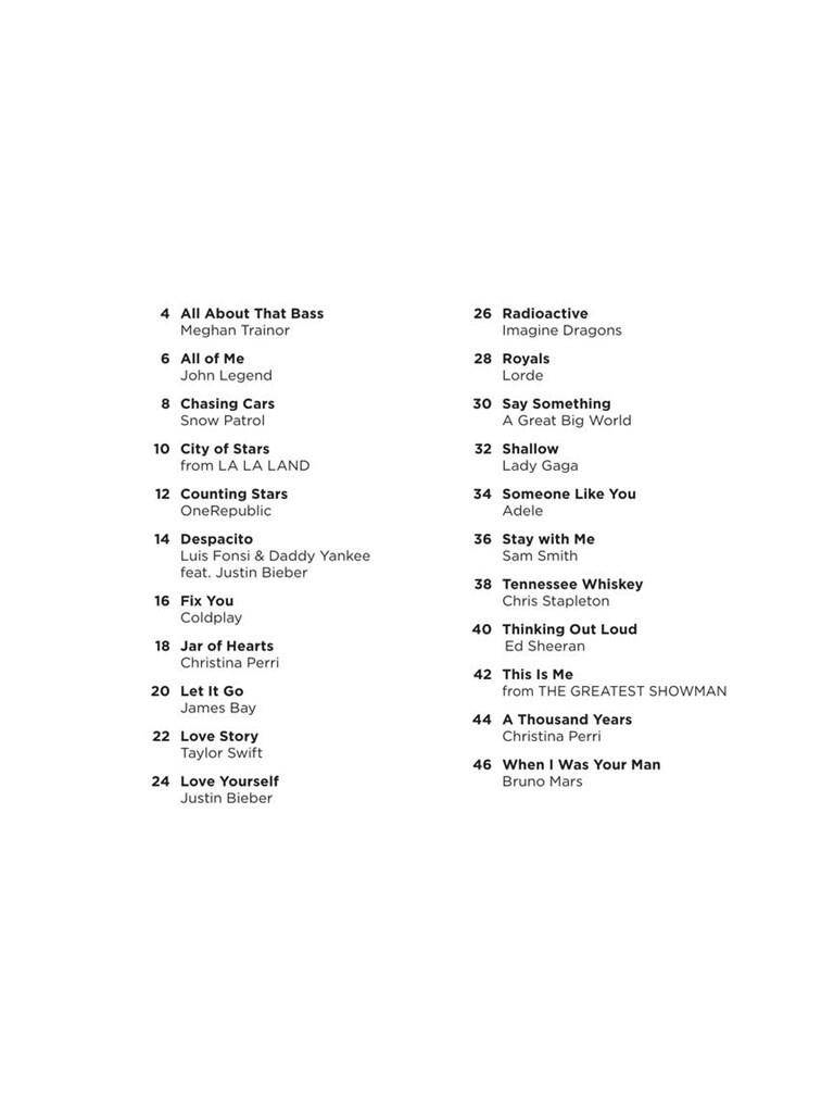 TOP HITS REALLY EASY GUITAR iz kategorije skladbe sodi med odlične akustična kitara.HL00300599 1. Stay With Me 2. Someone Like You 3. All of Me 4. Let it Go 5. Fix You 6. Despacit ...