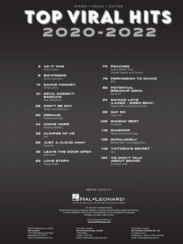 TOP VIRAL HITS 2020-2022 PVG iz kategorije zabavna glasba sodi med odlične Notna literatura.