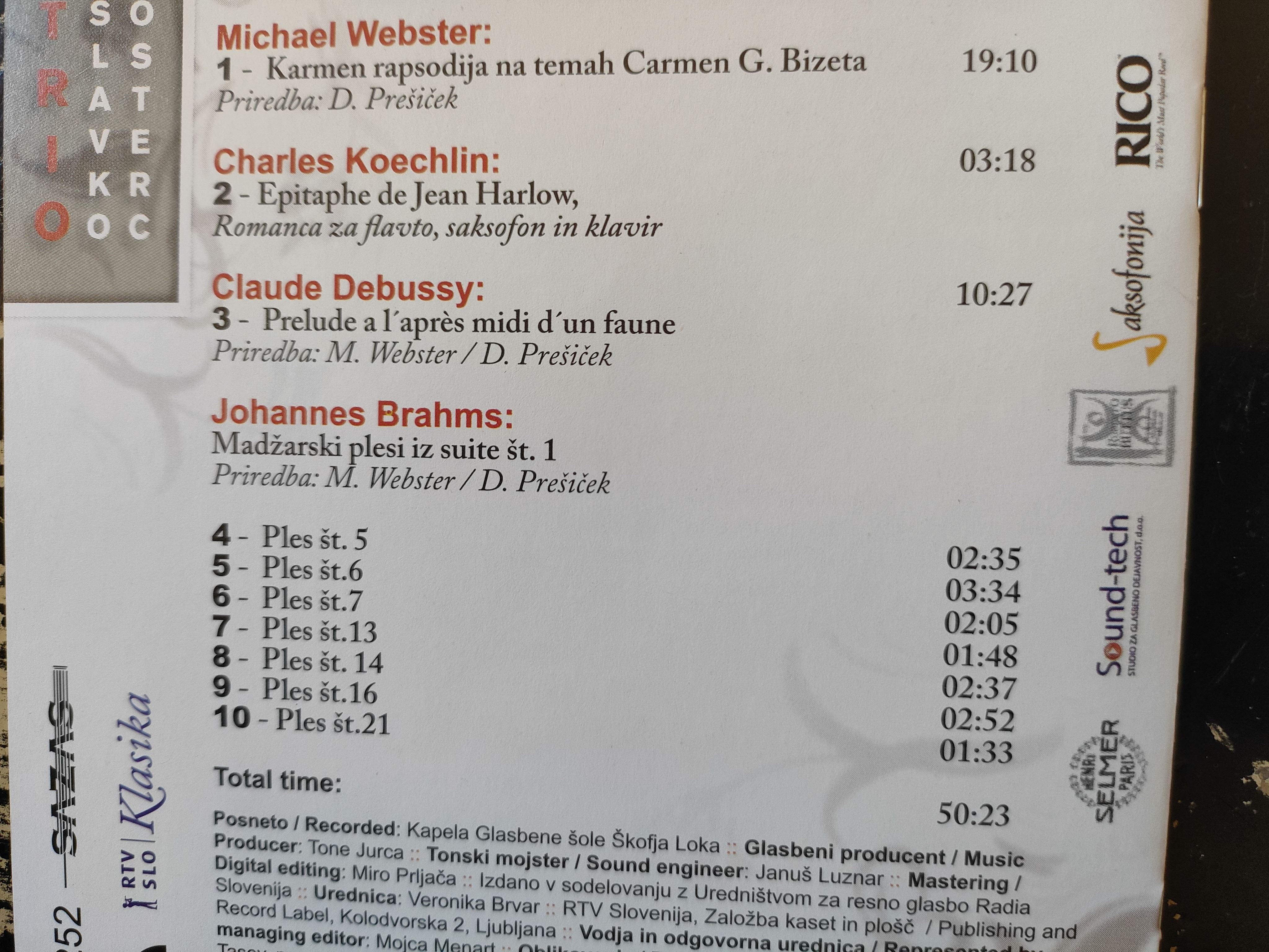 TRIO SLAVKO OSTERC/WEBSTER,KOECHLIN,DEBUSSY,BRAHMS iz kategorije klasika in slovenska narodna sodi med odlične cd.
