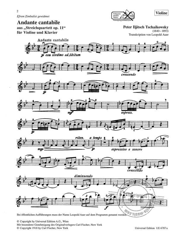 TSCHAIKOWSKY:ANDANTE CANTABILE OP.11 VIOLIN AND PIANO iz kategorije skladbe sodi med odlične violina.