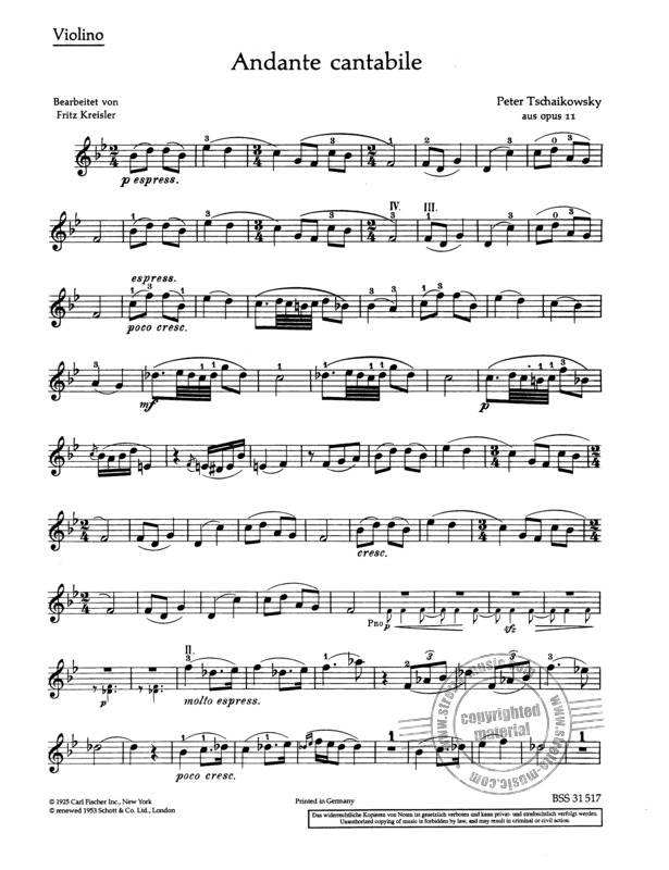 TSCHAIKOWSKY:ANDANTE CANTABILE OP.11 VIOLINE AND PIANO (KREISLER)