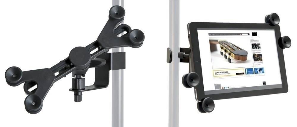 Univerzalno držalo za tablični računalnik znamke Gewa ustreza skoraj vsem modelom tabličnih računalnikov (Apple, Android, Windows). Na stojalo se pritrdi s pomočjo 5/8” zaklopa z zaprtim klipom (za stojala s premerom med 7” mm in 10,1”). Držalo lahko rotirate.