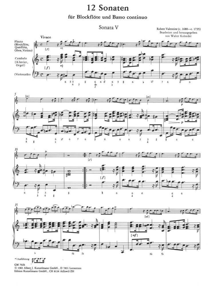 VALENTINE:12 SONATEN FUR BLOCKFLOTE UND BC. 5-8