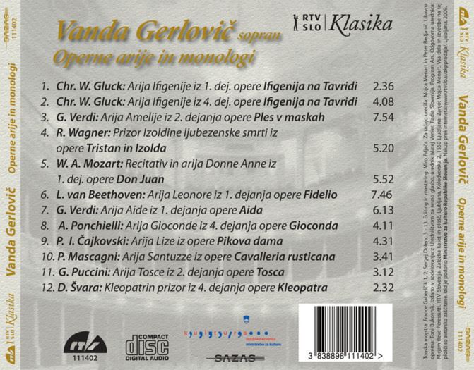 VANDA GERLOVIČ:SOPRAN OPERNE ARIJE iz kategorije klasika in slovenska narodna sodi med odlične cd.
