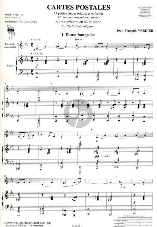 VERDIER:CARTES POSTALES 32 ORIGINAL PIECES + CD CLARINET AND PIANO iz kategorije skladbe sodi med odlične klarinet.